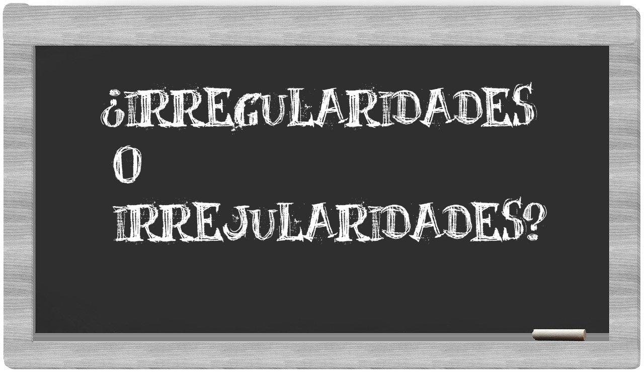 En la situación particular de las palabras irregularidades y irrejularidades, es fundamental que no vaciles, puesto que únicamente irregularidades se encuentra debidamente reconocida. En cambio, irrejularidades carece de presencia en el Diccionario de la Real Academia Española.