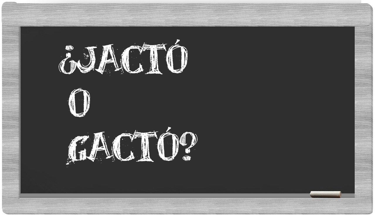Cuando se presenta la disyuntiva entre jactó y gactó, no hay razón para la incertidumbre, puesto que únicamente jactó es la opción que se encuentra validada en el Diccionario de la Real Academia de la Lengua, mientras que gactó carece de reconocimiento oficial.