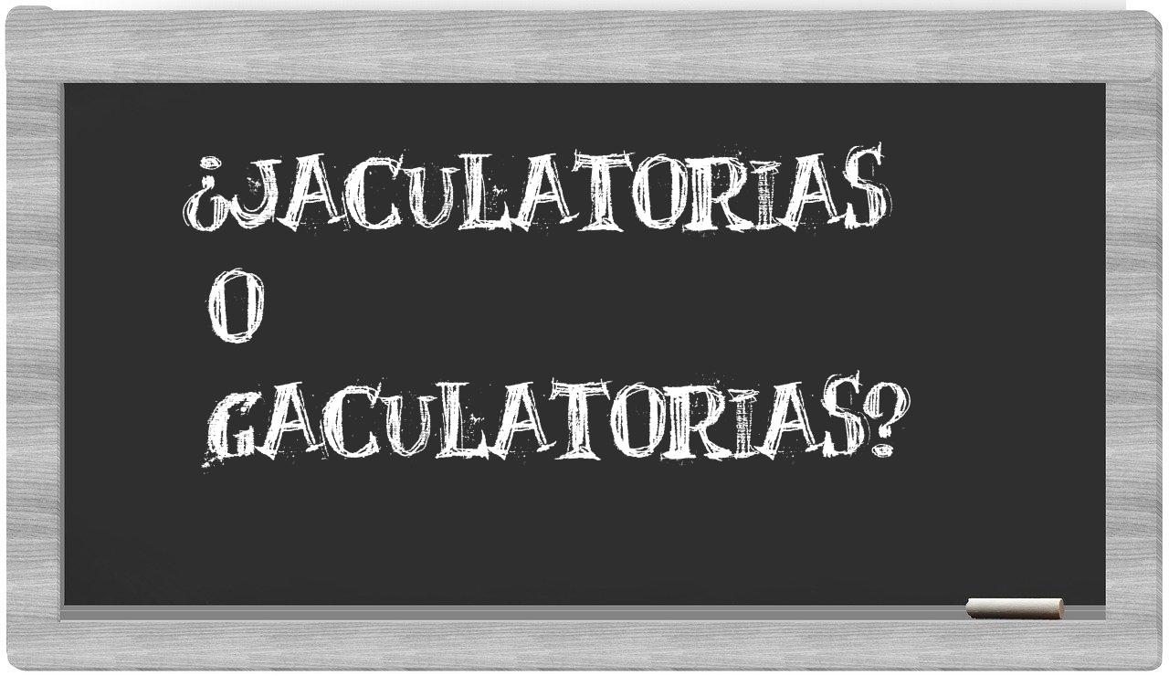 Cuando se trata de la distinción entre jaculatorias y gaculatorias, no caben vacilaciones, pues solamente jaculatorias es el término adecuado; de hecho, gaculatorias no figura en el repertorio del Diccionario de la Real Academia Española.
