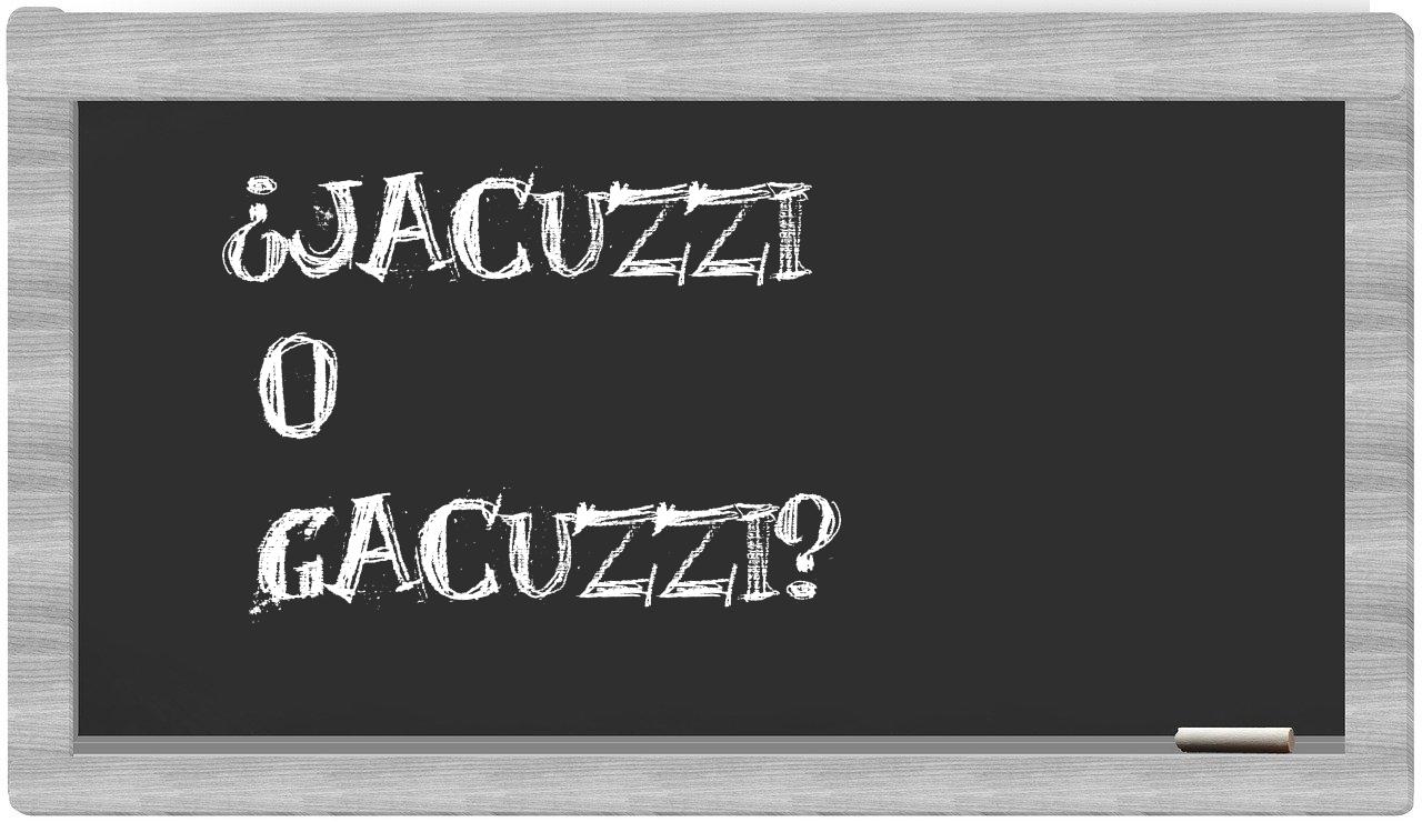 En la particular situación que se presenta entre los términos jacuzzi y gacuzzi, no hay razón para titubear, pues únicamente jacuzzi se encuentra adecuadamente redactada; por otro lado, gacuzzi no se halla registrada en el Diccionario de la Real Academia Española.