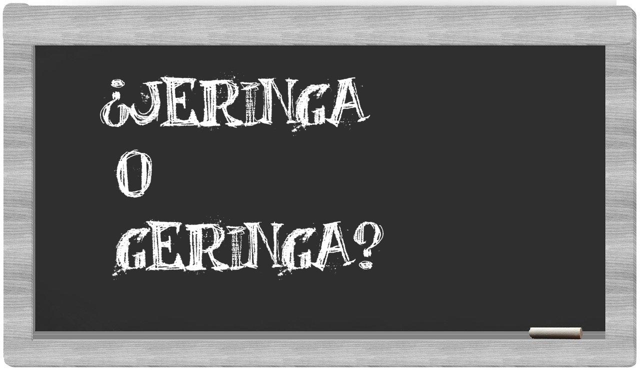 En la situación particular que involucra los términos jeringa y geringa, no deberías titubear en absoluto, pues únicamente jeringa se encuentra debidamente escrita. Por otro lado, geringa no figura entre las entradas del Diccionario de la Real Academia de la Lengua.
