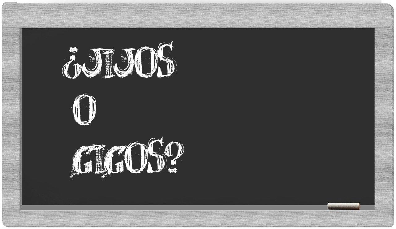 Cuando se trata de decidir entre jijos y gigos, no tienes por qué titubear, puesto que únicamente jijos se encuentra adecuadamente registrada, mientras que gigos no forma parte del léxico de la Real Academia Española.