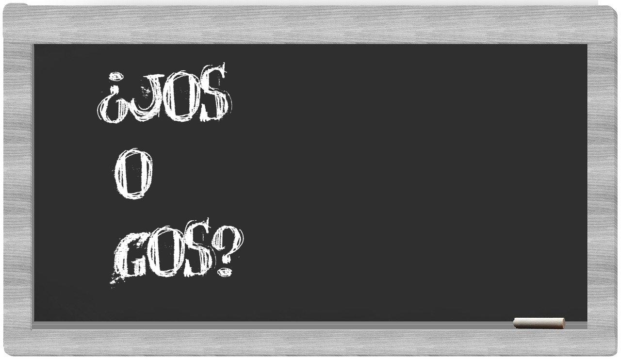 Cuando se trata del dilema entre jos y gos, no hay lugar para la indecisión, porque únicamente jos es la forma adecuada en este contexto, mientras que gos no se encuentra en el acervo del Diccionario de la Real Academia Española.