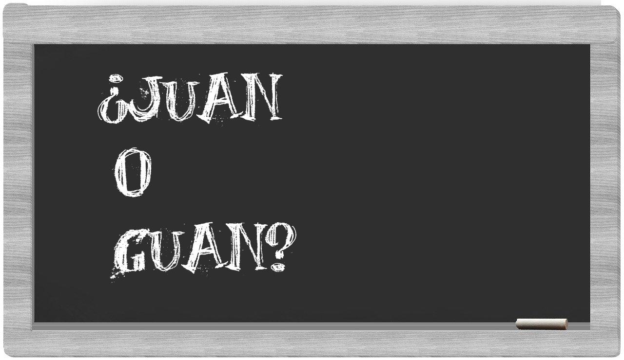 En la situación específica que involucra los términos juan y guan, no deberías titubear, pues únicamente juan se encuentra correctamente redactado. La palabra guan no existe en el Diccionario de la Real Academia Española.