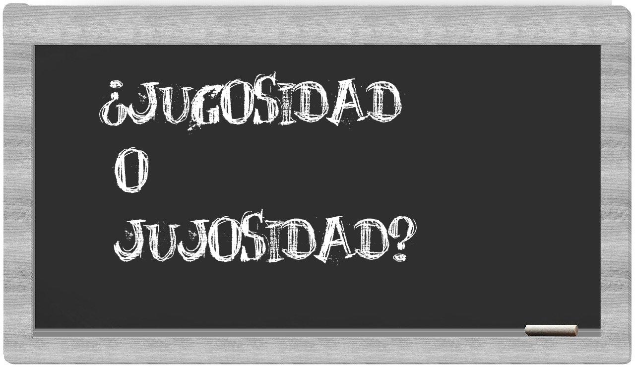 Cuando se trata de elegir entre jugosidad y jujosidad, la decisión es más que obvia, puesto que únicamente jugosidad se halla correctamente redactada, mientras que jujosidad carece de reconocimiento en el Diccionario de la Real Academia Española.