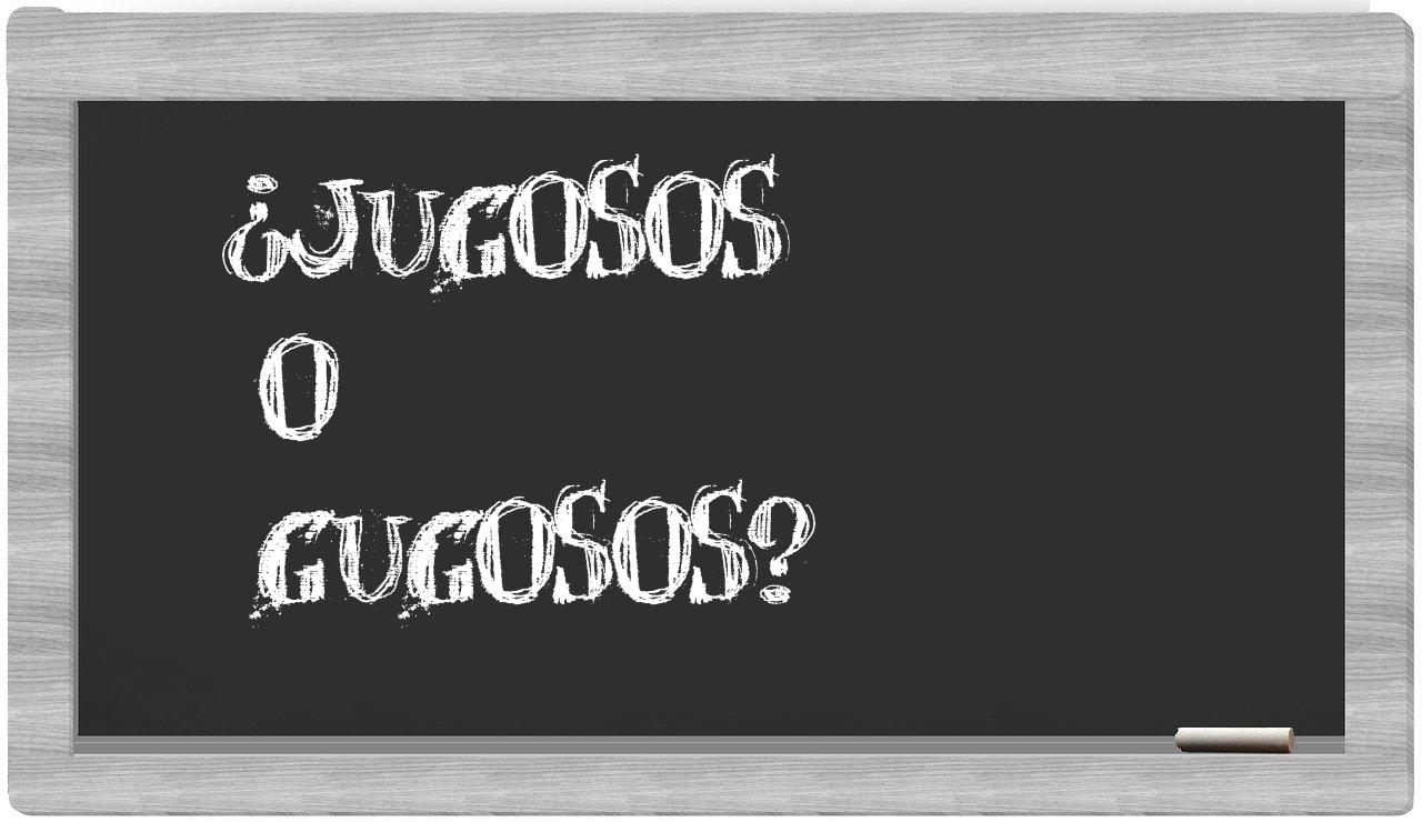 Cuando te enfrentes a la elección entre los términos jugosos y gugosos, no te sientas titubeante, pues únicamente jugosos está correctamente formulada. En cambio, gugosos no se encuentra registrada en el Diccionario de la Real Academia Española.
