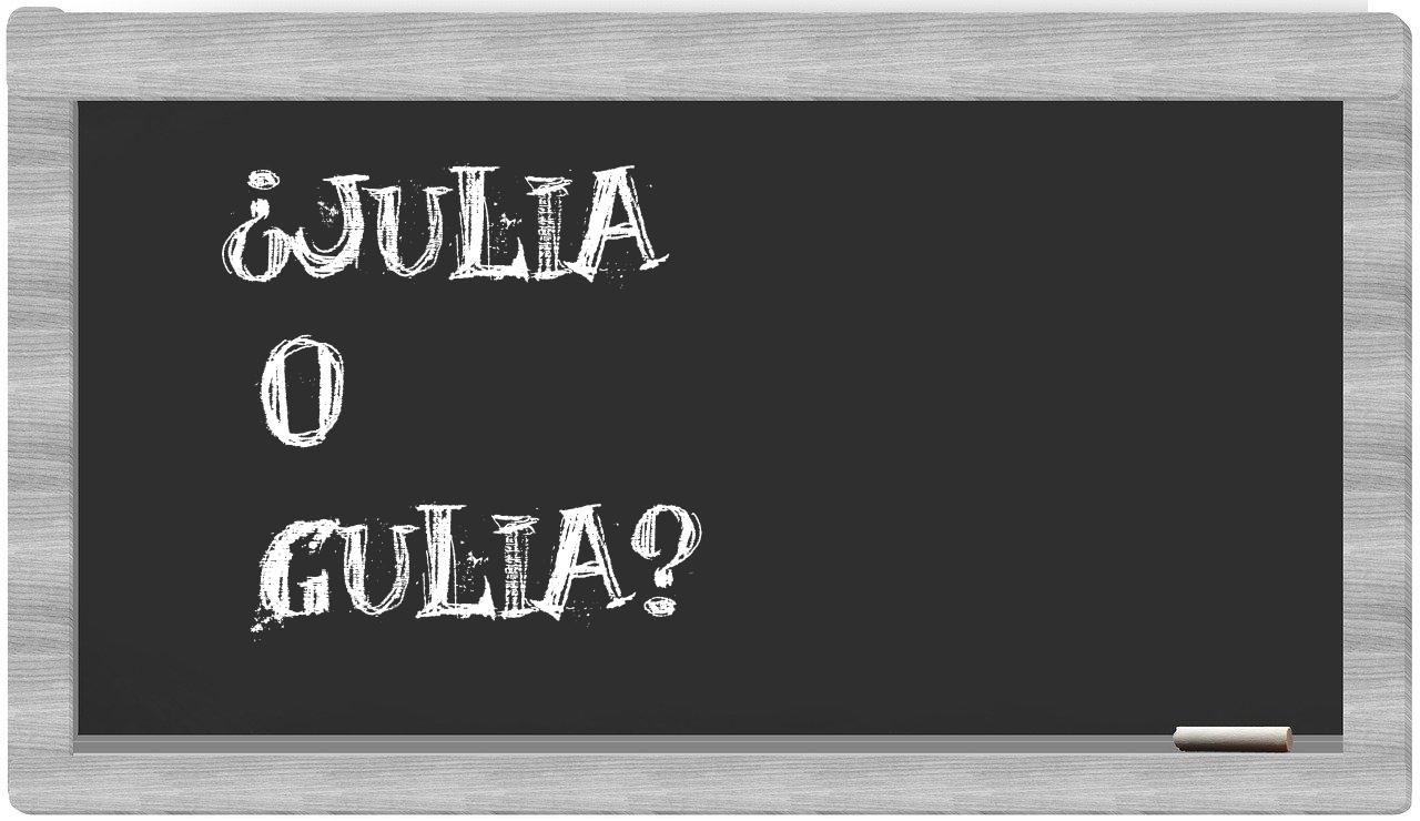 Cuando se trata de las palabras julia y gulia, no hay lugar para la incertidumbre, porque únicamente julia se encuentra registrada como adecuada. Por otro lado, gulia no figura en el Diccionario de la Real Academia de la Lengua.