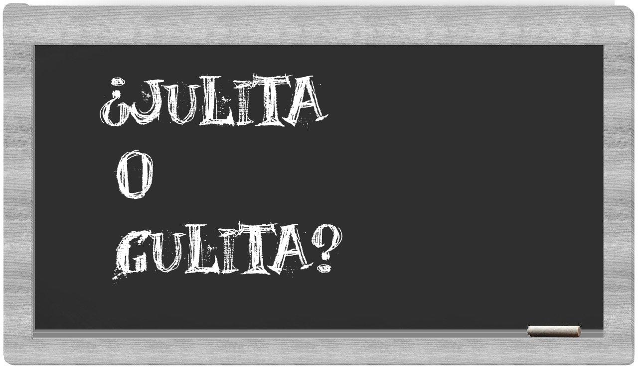 En la situación específica que involucra los términos julita y gulita, no deberías titubear, pues únicamente julita se encuentra registrado de manera adecuada, mientras que gulita está ausente en el Diccionario de la Real Academia Española.