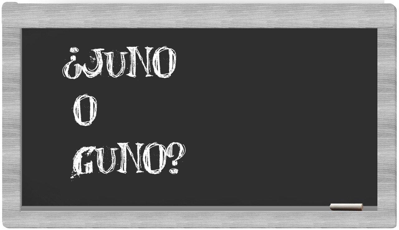En la particular situación que involucra los términos juno y guno, nunca deberías vacilar, puesto que únicamente juno se encuentra debidamente escrita. La forma guno carece de reconocimiento en el Diccionario de la Real Academia Española.