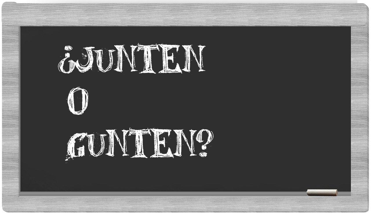 No deberías vacilar en la elección entre junten y gunten, puesto que únicamente junten está correctamente expresada, mientras que gunten carece de reconocimiento en el Diccionario de la Real Academia Española.