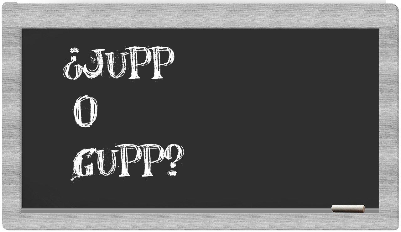 Cuando se presente la comparación entre jupp y gupp, es fundamental que no titubees, puesto que solo jupp es la forma adecuada, mientras que gupp carece de reconocimiento en el Diccionario de la Real Academia Española.
