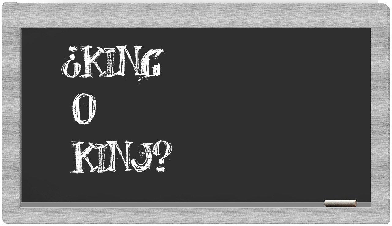 Cuando se trata del dilema que enfrentan king y kinj, es crucial no vacilar, porque únicamente king se encuentra correctamente formulada. Por otro lado, kinj carece de presencia en el Diccionario de la Real Academia Española.