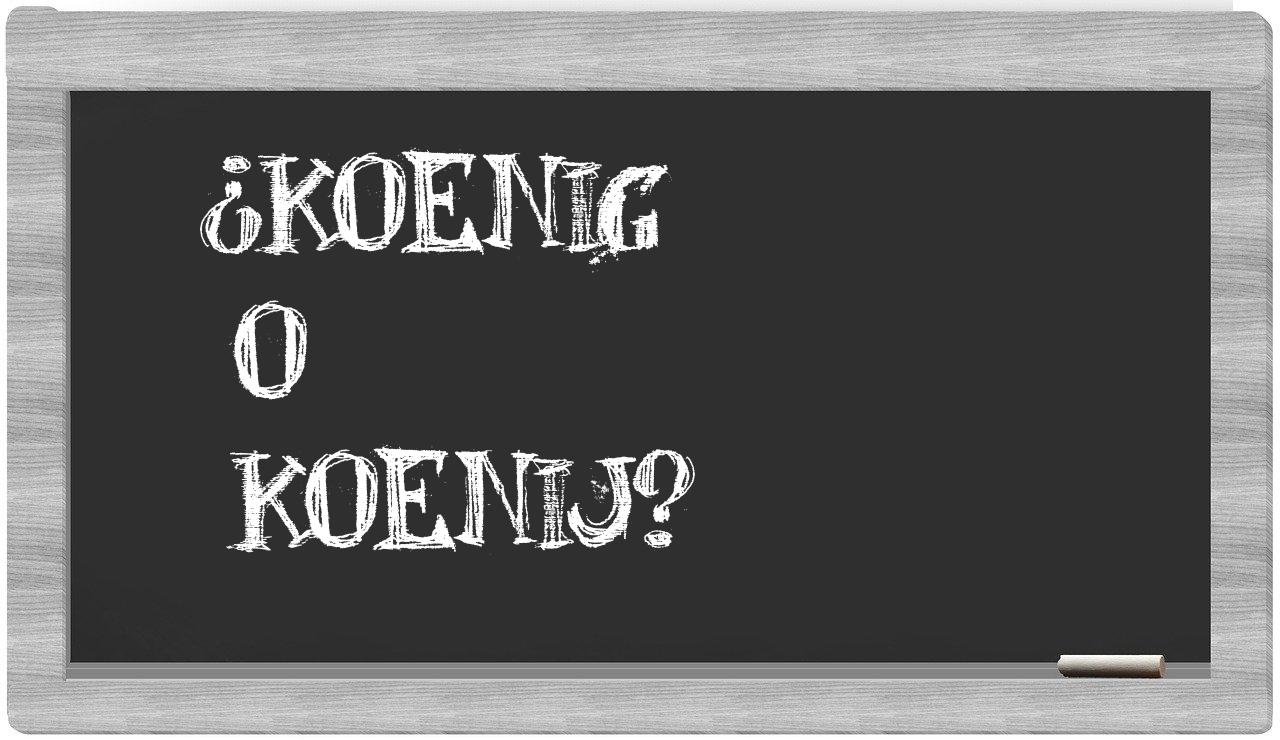 Cuando se habla de las expresiones koenig y koenij, no debería haber lugar para la indecisión, pues es indiscutible que únicamente koenig es la opción adecuadamente redactada. Por otro lado, koenij no tiene cabida en el Diccionario de la Real Academia Española.