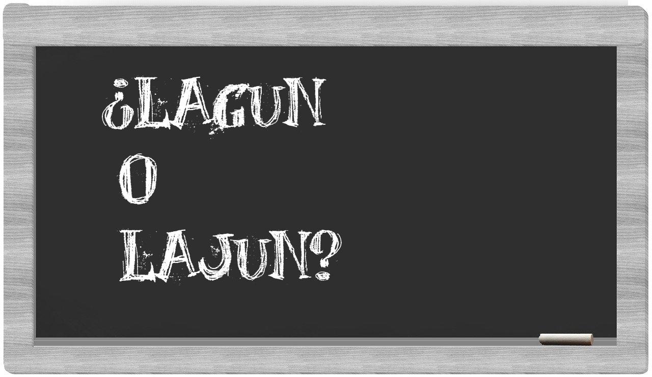 En la situación específica que se presenta entre los términos lagun y lajun, no deberías titubear en absoluto, puesto que únicamente lagun es el que se encuentra debidamente escrito. El término lajun no se halla registrado en el Diccionario de la Real Academia Española.