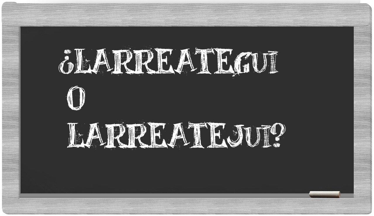 En la particular situación que involucra los términos larreategui y larreatejui, no deberías experimentar incertidumbre alguna, puesto que únicamente larreategui es la forma correcta y aceptada; por su parte, larreatejui no figura en el Diccionario de la Real Academia Española.