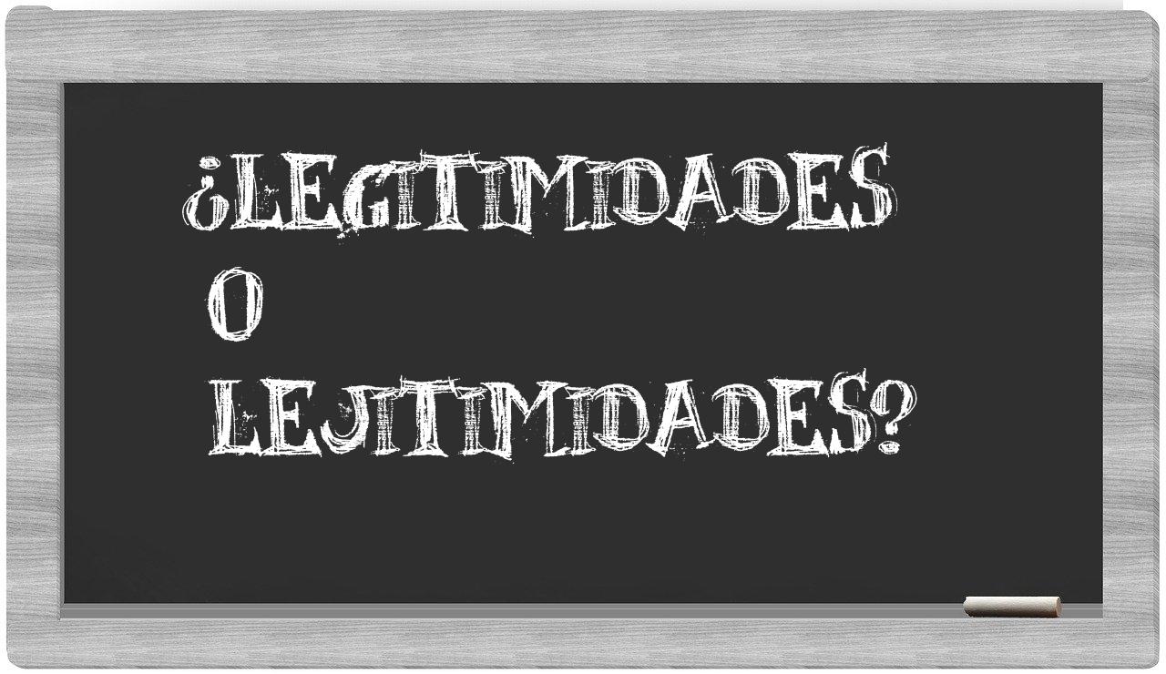 En la situación específica que confronta a legitimidades y lejitimidades, no deberías titubear en absoluto, pues únicamente legitimidades está validada como correcta. Por otro lado, lejitimidades no se encuentra registrada en el Diccionario de la Real Academia Española.