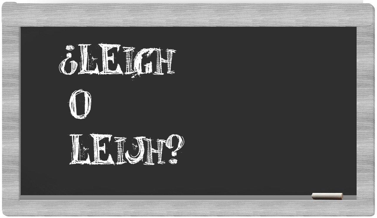 Cuando se presenta la elección entre leigh y leijh, es fundamental que no vaciles, puesto que únicamente leigh es la que se encuentra adecuadamente registrada. Por otro lado, leijh no figura en el Diccionario de la Real Academia Española.