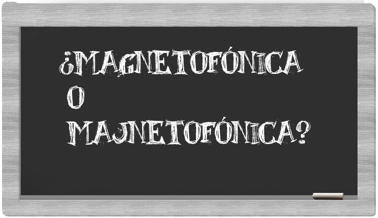 Cuando se presenta la elección entre magnetofónica y majnetofónica, no debería haber lugar para la incertidumbre, puesto que únicamente magnetofónica es la forma adecuada y reconocida, mientras que majnetofónica está ausente en el Diccionario de la Real Academia Española.