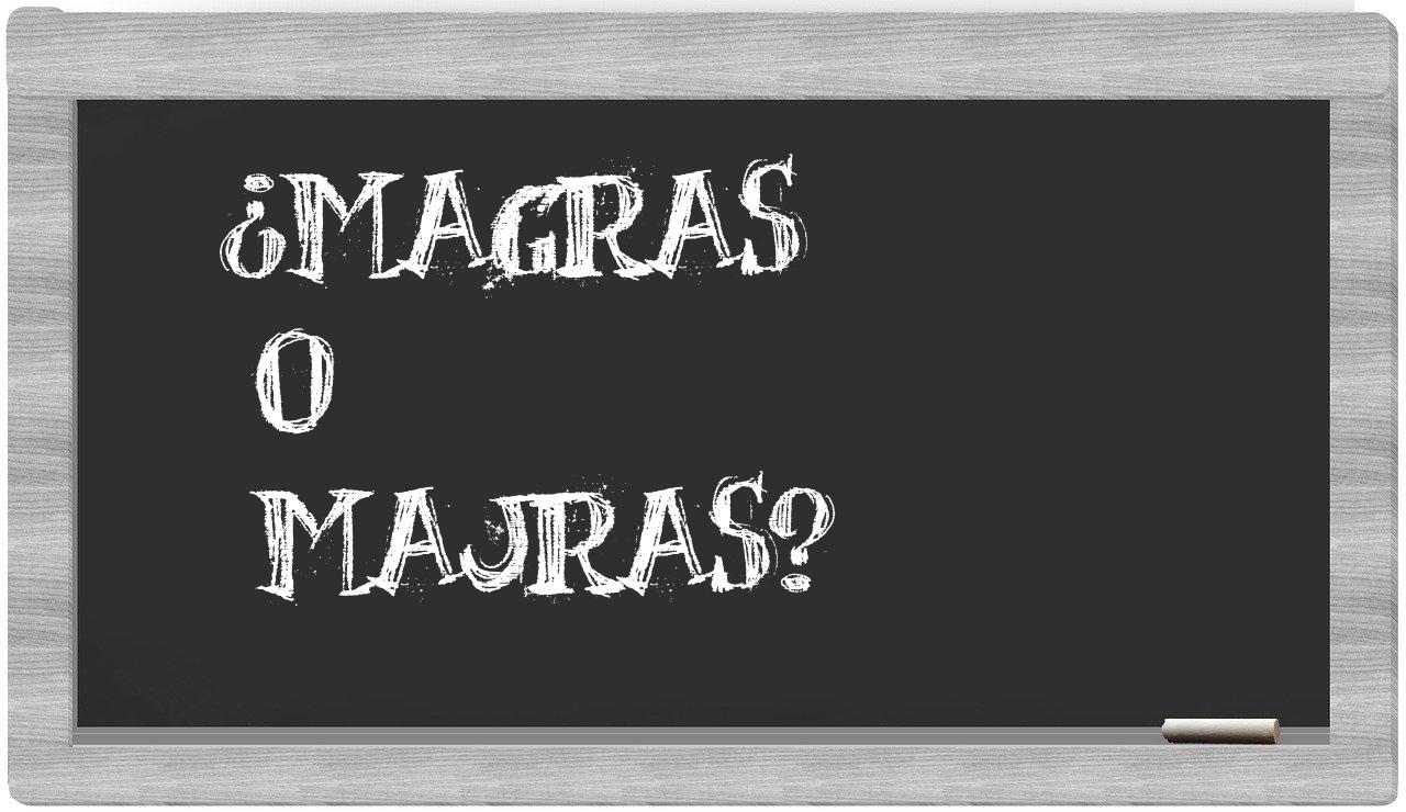 La mezcla entre magras y majras ocurre en gran medida por la similitud en su pronunciación. En la mayoría de los acentos del español, ambas expresiones prácticamente resuenan igual, lo que puede inducir a la creencia de que tienen una escritura idéntica. Sin embargo, la manera correcta de escribir cada término deriva de su historia etimológica y de las particularidades establecidas en las reglas de ortografía del español.