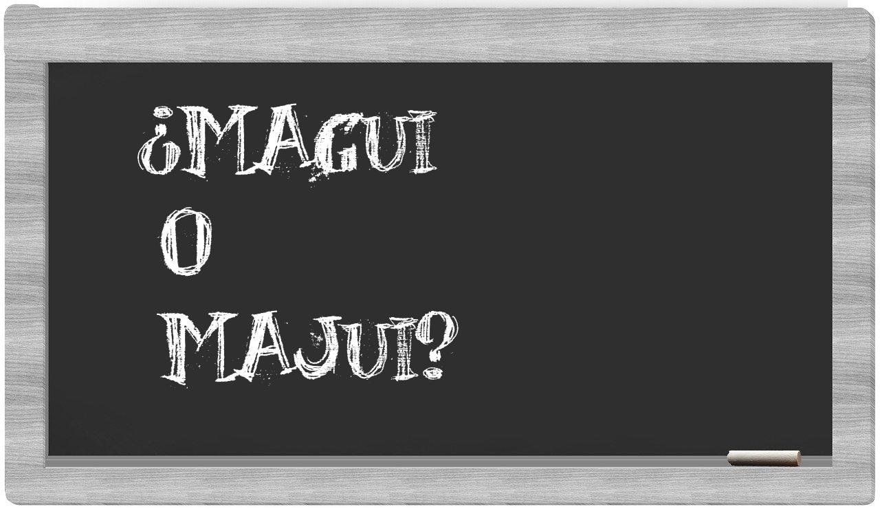 Al considerar las opciones entre magui y majui, no hay lugar para la incertidumbre, puesto que únicamente magui es la forma correcta; cabe destacar que majui no se encuentra registrada en el Diccionario de la Real Academia Española.