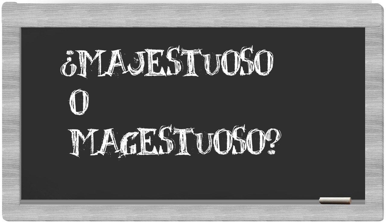 Cuando se trata de la elección entre majestuoso y magestuoso, la decisión debería ser clara como el agua, porque únicamente majestuoso cuenta con la validación que brinda el Diccionario de la Real Academia de la Lengua, mientras que magestuoso se encuentra ausente en su repertorio.