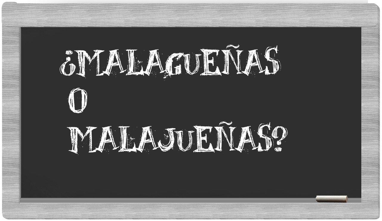 Cuando se trata de distinguir entre malagueñas y malajueñas, es esencial que no haya lugar para la incertidumbre, puesto que únicamente malagueñas se encuentra correctamente formulada; de hecho, malajueñas no figura en el catálogo del Diccionario de la Real Academia Española.