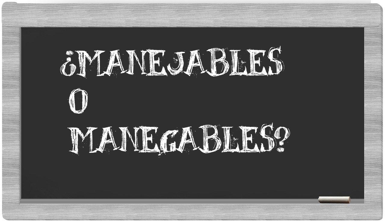 Cuando se enfrentan las terminaciones manejables y manegables, es fundamental no vacilar, puesto que únicamente manejables se encuentra debidamente registrada y reconocida, mientras que manegables carece de presencia en el diccionario de la Real Academia Española.