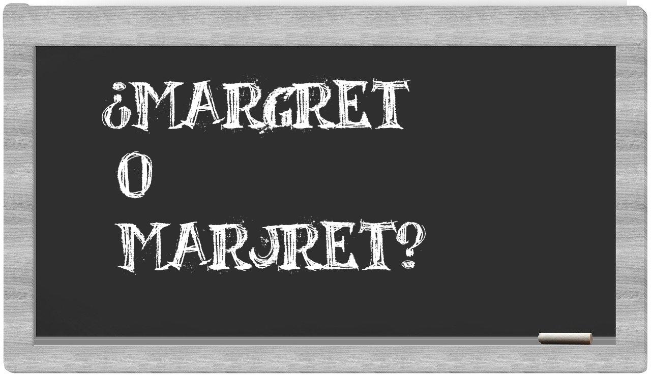En la particular situación que involucra los términos margret y marjret, no parece haber motivo para vacilar, puesto que solo margret se encuentra correctamente redactado. La palabra marjret no figura en el Diccionario de la Real Academia Española.