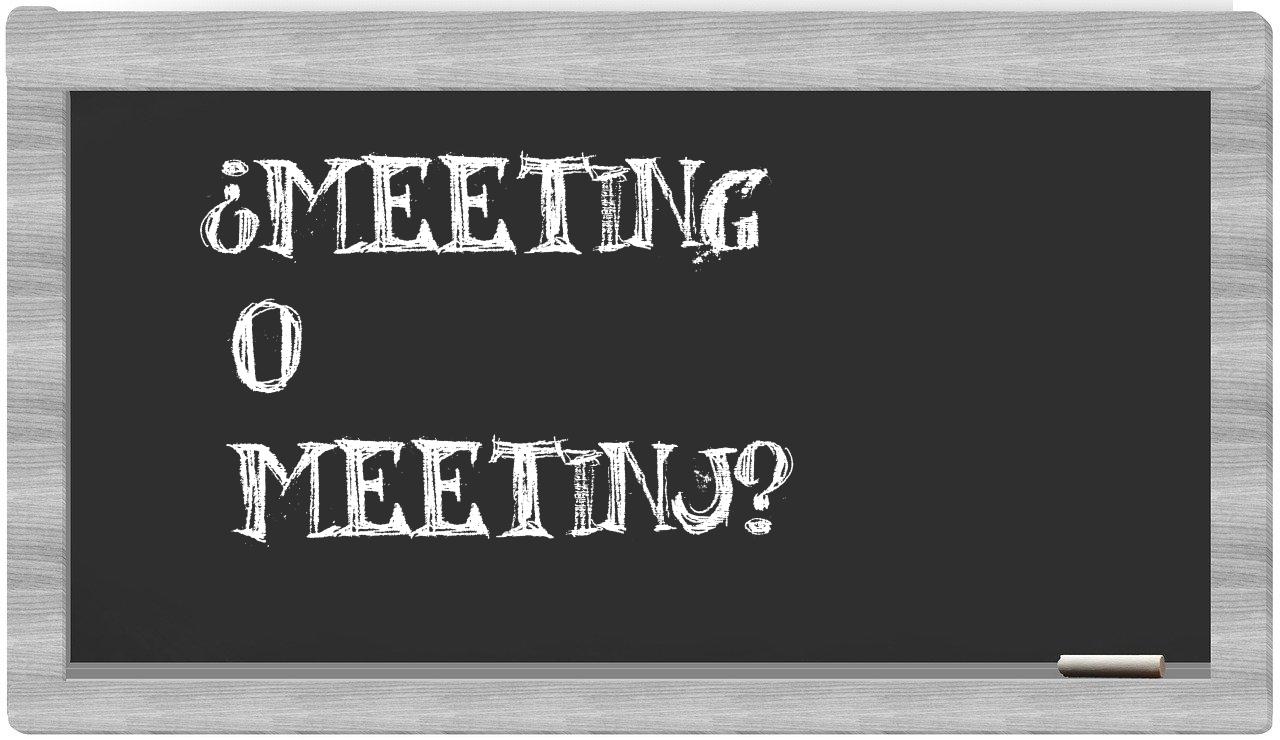 Cuando se trata de elegir entre meeting y meetinj, la decisión es más que obvia, puesto que únicamente meeting se halla correctamente redactada, mientras que meetinj carece de reconocimiento en el Diccionario de la Real Academia Española.