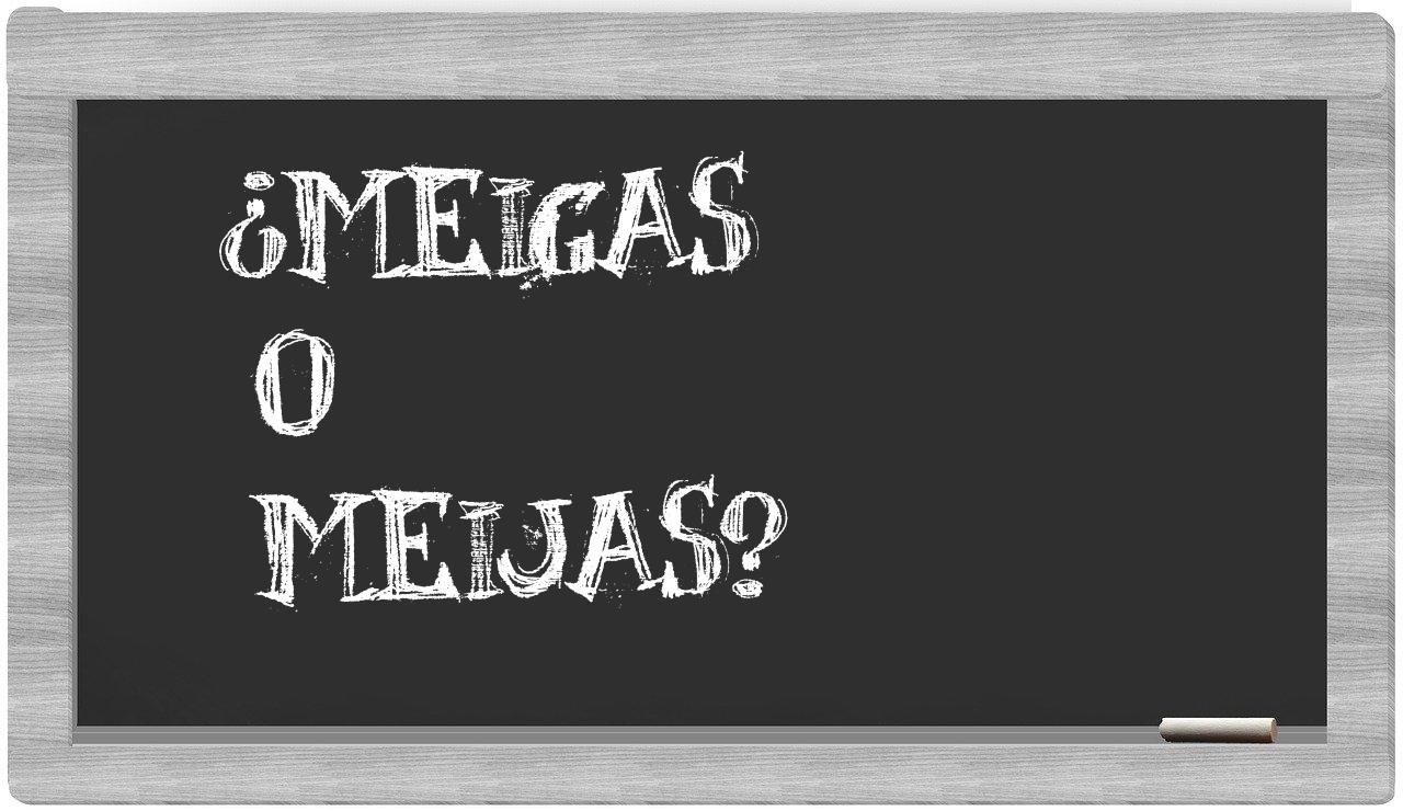 Cuando se trata de decidir entre meigas y meijas, nunca hay lugar para la vacilación, dado que únicamente meigas se encuentra registrada de manera adecuada, mientras que meijas carece de reconocimiento en el Diccionario de la Real Academia Española.