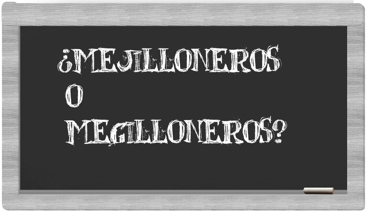 En la particularidad de la relación entre los términos mejilloneros y megilloneros, no hay lugar para la incertidumbre, puesto que únicamente mejilloneros se encuentra registrado de manera adecuada. Por otro lado, megilloneros no figura en el compendio de la Real Academia Española.