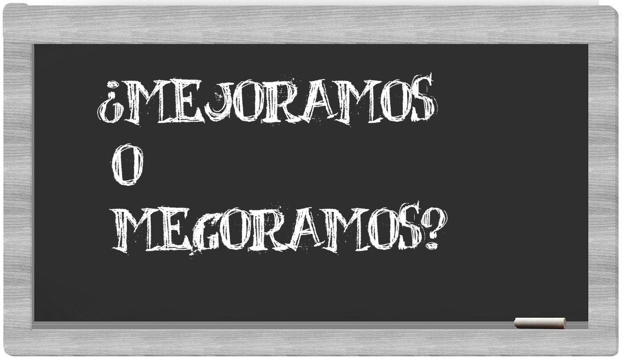 En la discusión particular entre los términos mejoramos y megoramos, no deberías vacilar en tu elección, puesto que únicamente mejoramos se encuentra correctamente registrada. Por otro lado, megoramos no figura entre las definiciones de la Real Academia Española.