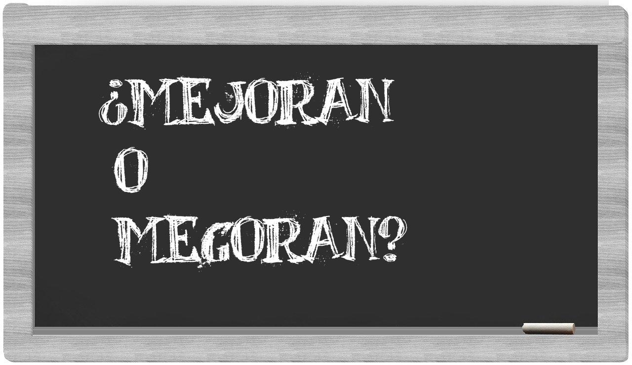 En la situación particular que involucra los términos mejoran y megoran, no deberías tener ningún tipo de incertidumbre, puesto que únicamente mejoran se encuentra adecuadamente formulada. Por otro lado, megoran carece de reconocimiento en el Diccionario de la Real Academia Española.