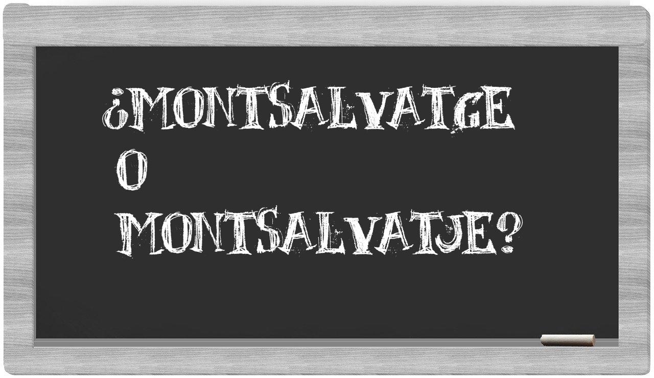Al considerar las opciones entre montsalvatge y montsalvatje, no hay lugar para la incertidumbre, puesto que únicamente montsalvatge es la forma correcta; cabe destacar que montsalvatje no se encuentra registrada en el Diccionario de la Real Academia Española.
