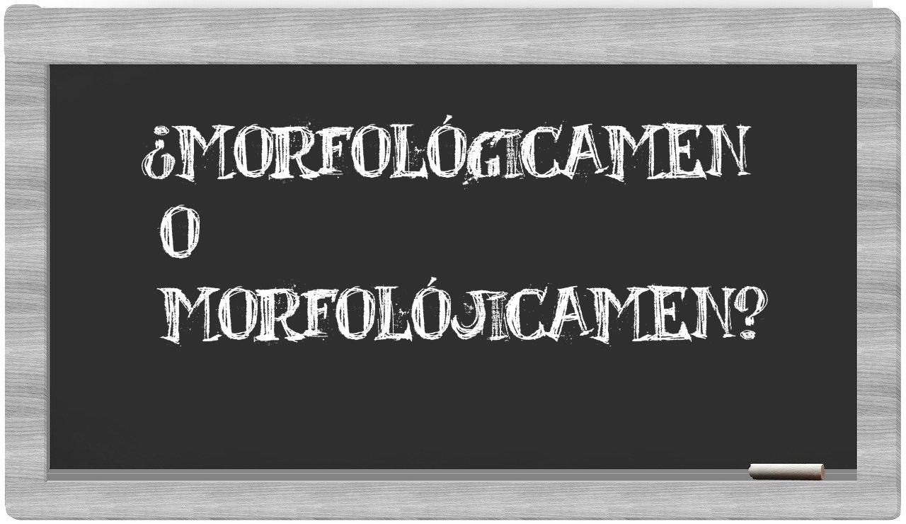 Cuando se trata de la relación entre morfológicamen y morfolójicamen, no deberías siquiera titubear, porque únicamente morfológicamen es la opcion adecuada. morfolójicamen carece de reconocimiento en el Diccionario de la Real Academia Española.