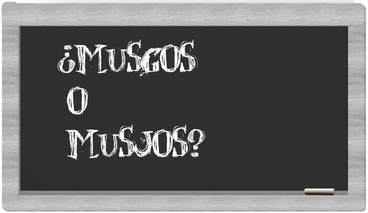 En la particular situación que involucra los términos musgos y musjos, no deberías tener ninguna vacilación, puesto que únicamente musgos se encuentra correctamente formulada. Por otro lado, musjos no se halla registrada en el Diccionario de la Real Academia de la Lengua.
