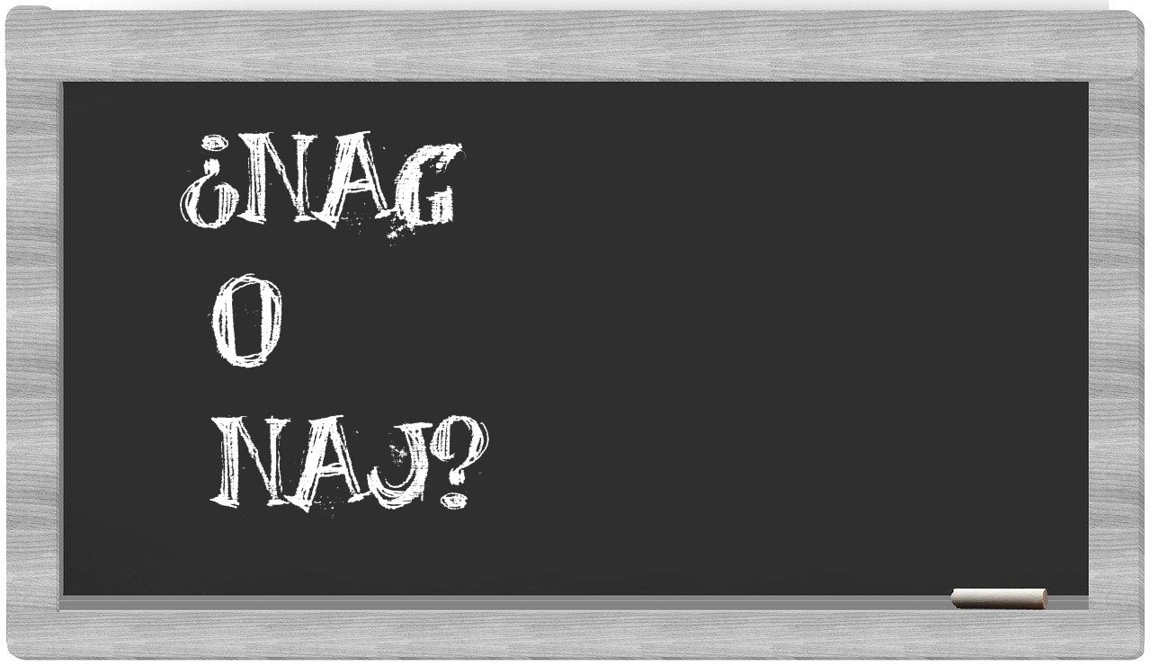 En la particular situación que se presenta entre los términos nag y naj, no hay razón para titubear, pues únicamente nag se encuentra adecuadamente redactada; por otro lado, naj no se halla registrada en el Diccionario de la Real Academia Española.