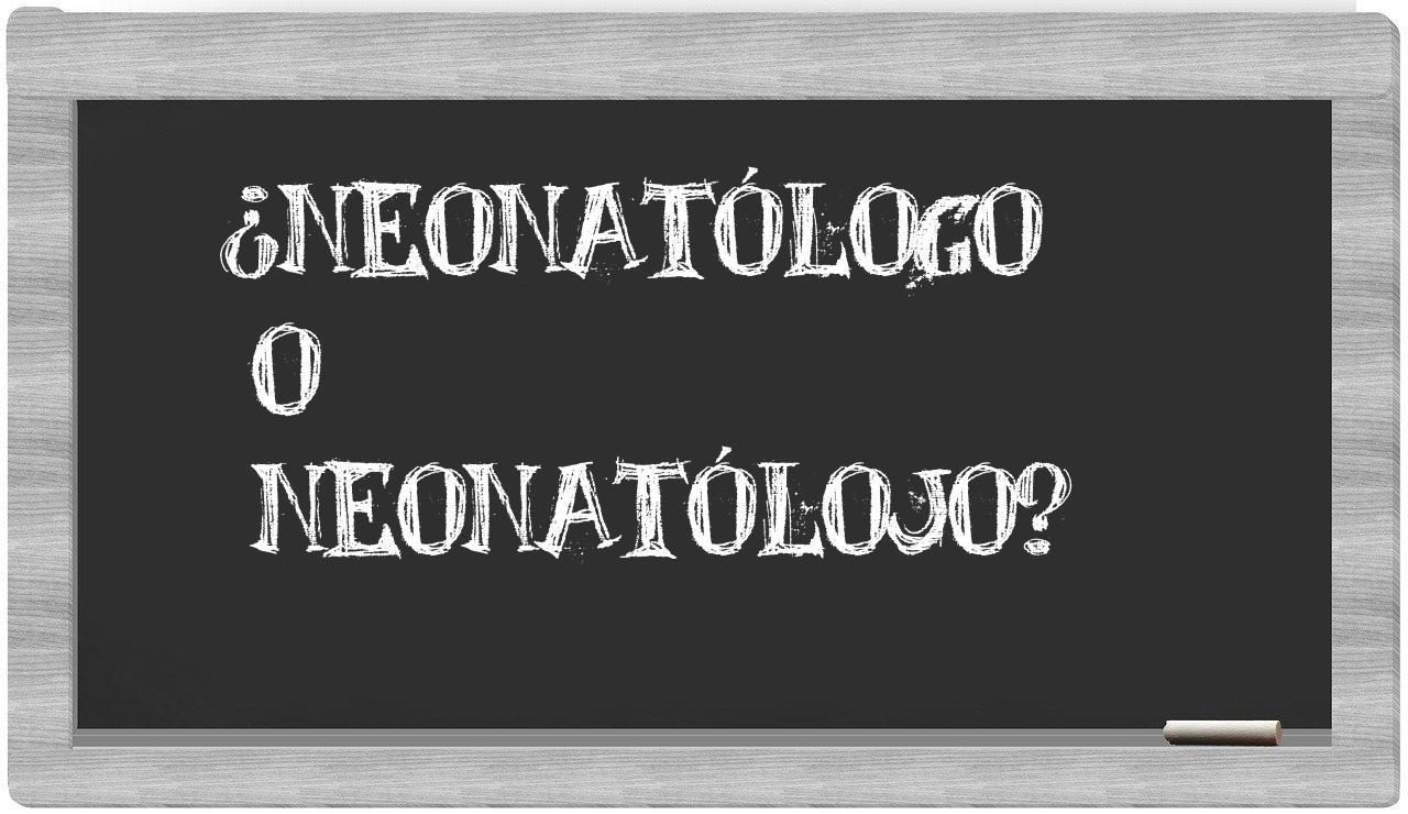 En la particular situación que involucra los términos neonatólogo y neonatólojo, no deberías titubear en tu elección, puesto que únicamente neonatólogo se encuentra debidamente registrada en el Diccionario de la Real Academia Española, mientras que neonatólojo no tiene cabida en su lexicografía.