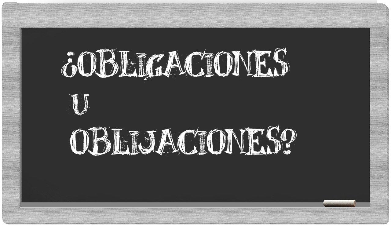 Cuando se trata de decidir entre las expresiones obligaciones y oblijaciones, no deberías tener titubeos, puesto que únicamente obligaciones es la que se encuentra debidamente registrada, mientras que oblijaciones no se halla en el Diccionario de la Real Academia Española.
