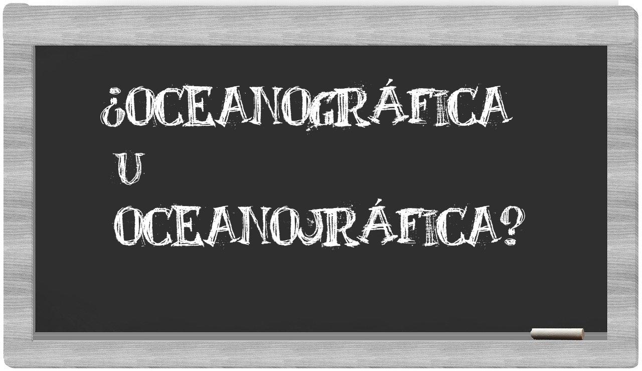 Cuando se trata de decidir entre oceanográfica y oceanojráfica, debes estar plenamente convencido, pues únicamente oceanográfica es la opción que se encuentra correctamente registrada. Por otro lado, oceanojráfica no figura en el prestigioso Diccionario de la Real Academia Española.