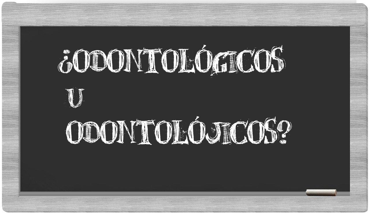 En la discusión particular entre los términos odontológicos y odontolójicos, no deberías vacilar en tu elección, puesto que únicamente odontológicos se encuentra correctamente registrada. Por otro lado, odontolójicos no figura entre las definiciones de la Real Academia Española.