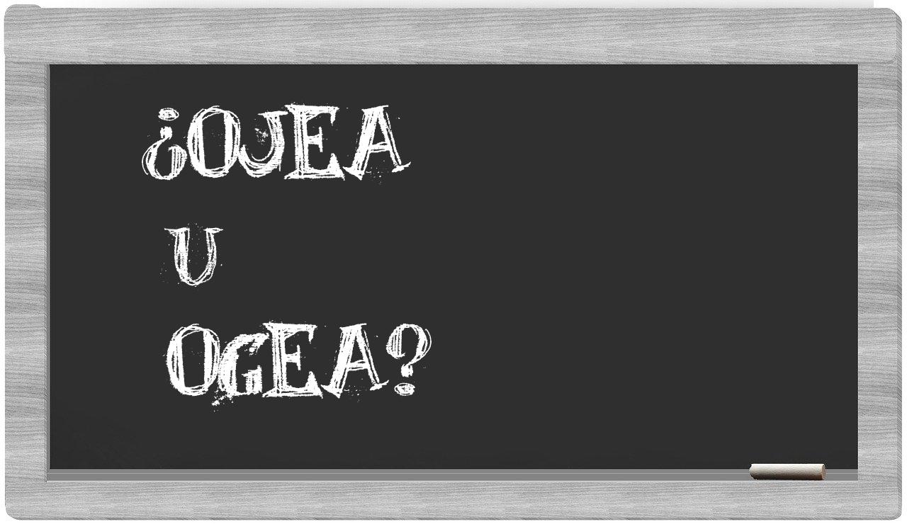 Referente a la distinción que debe hacerse entre ojea y ogea, no debes experimentar incertidumbre, puesto que únicamente ojea es la forma adecuada que figura en el Diccionario de la Real Academia Española, mientras que ogea carece de reconocimiento en dicho compendio lingüístico.