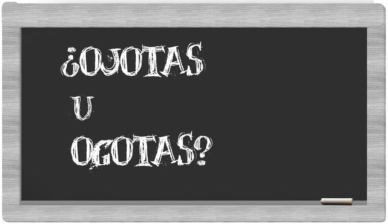 Cuando te encuentres ante la elección de términos entre ojotas y ogotas, no deberías titubear en absoluto, pues únicamente ojotas se encuentra debidamente registrada y validada, mientras que ogotas no forma parte del léxico reconocido por la Real Academia Española.