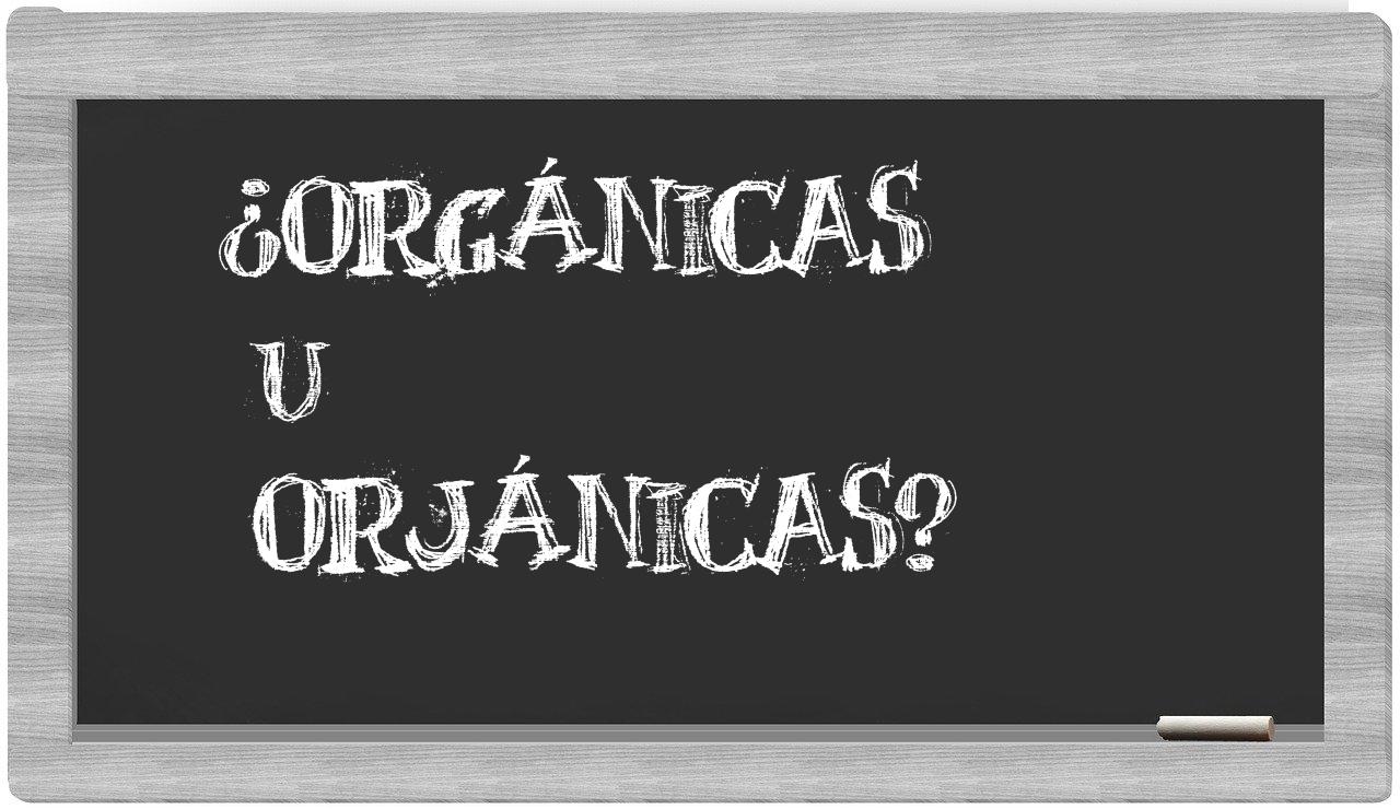 Cuando se presenta la disyuntiva entre orgánicas y orjánicas, es esencial que no te sientas indeciso, puesto que únicamente orgánicas se encuentra debidamente registrada como correcta. Por otro lado, orjánicas no se halla en el prestigioso Diccionario de la Real Academia Española.