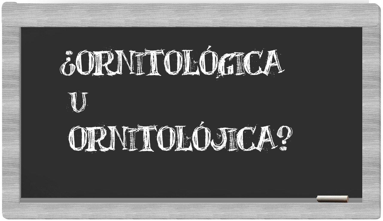 En la situación específica que involucra los términos ornitológica y ornitolójica, no debería existir lugar para la incertidumbre, puesto que únicamente ornitológica se encuentra correctamente redactada. Por otro lado, ornitolójica está ausente en el prestigioso Diccionario de la Real Academia Española.