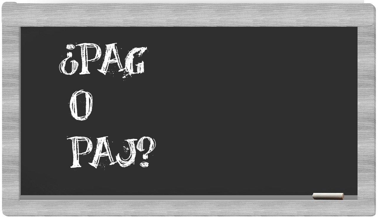 Cuando se trata de la elección entre pag y paj, la decisión debería ser sencilla, porque solo pag es la forma adecuada, mientras que paj ni siquiera tiene lugar en el léxico del Diccionario de la Real Academia Española.