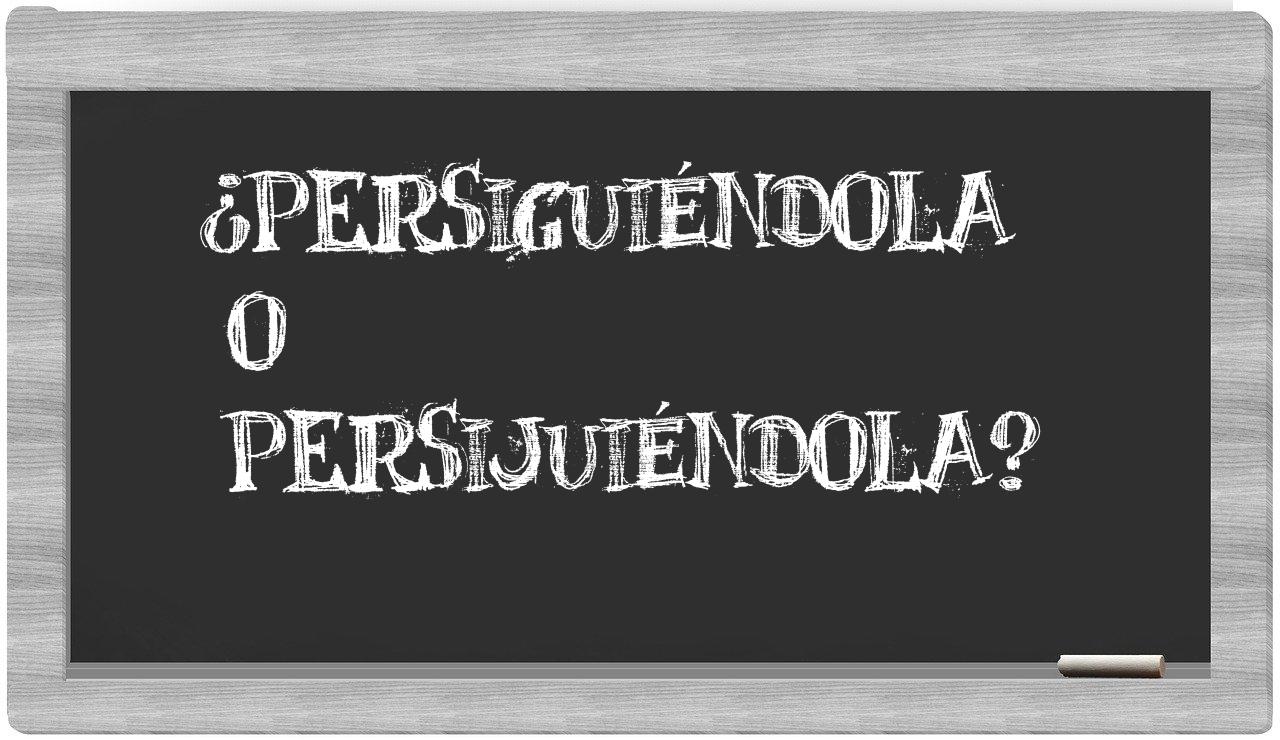 En la situación particular que involucra a persiguiéndola y persijuiéndola, no existe lugar para la incertidumbre, puesto que únicamente persiguiéndola se encuentra correctamente escrita. Por otro lado, persijuiéndola es un término que no está registrado en el Diccionario de la Real Academia Española.