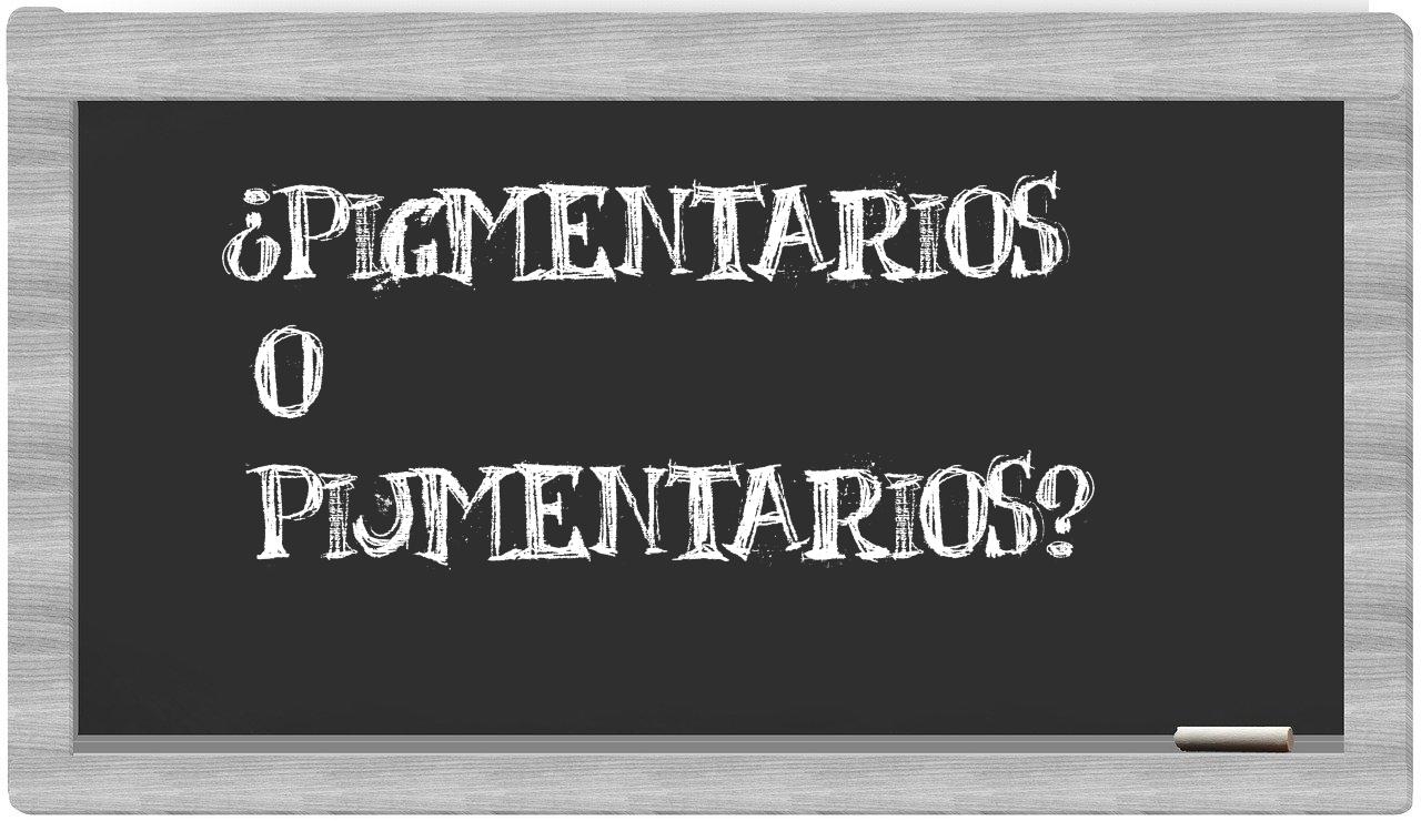 En la particular situación que involucra los términos pigmentarios y pijmentarios, nunca deberías vacilar, puesto que únicamente pigmentarios se encuentra debidamente escrita. La forma pijmentarios carece de reconocimiento en el Diccionario de la Real Academia Española.