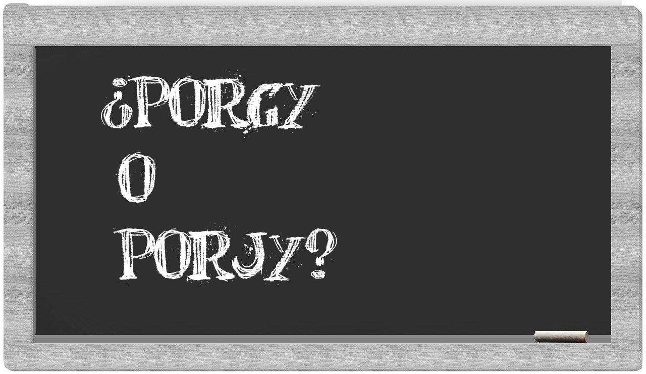 En la particular situación que involucra los términos porgy y porjy, no parece haber motivo para vacilar, puesto que solo porgy se encuentra correctamente redactado. La palabra porjy no figura en el Diccionario de la Real Academia Española.