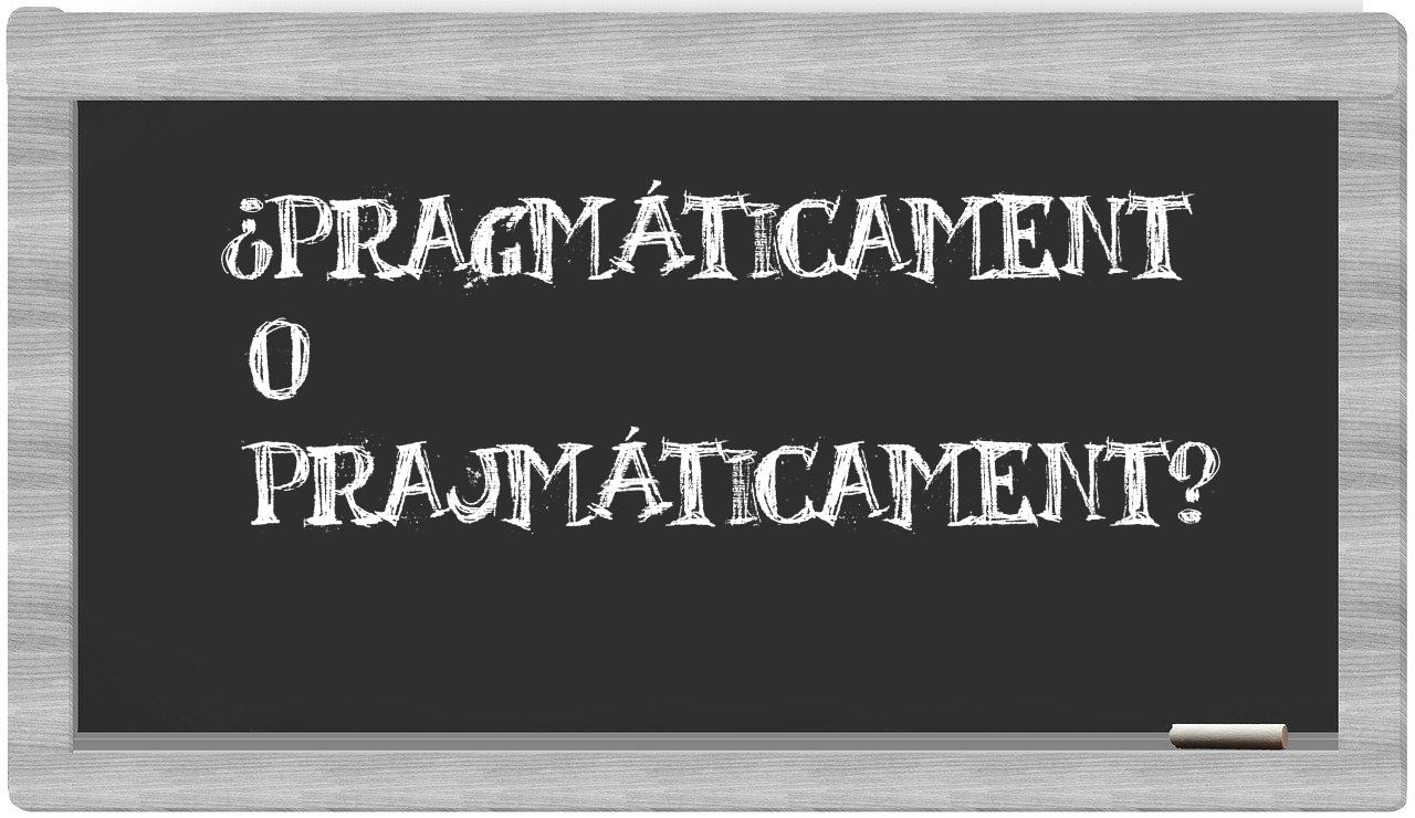 En la situación específica que involucra los términos pragmáticament y prajmáticament, no deberías titubear en absoluto, puesto que únicamente pragmáticament se encuentra correctamente formulada. Por otro lado, prajmáticament no figura en el Diccionario de la Real Academia Española.